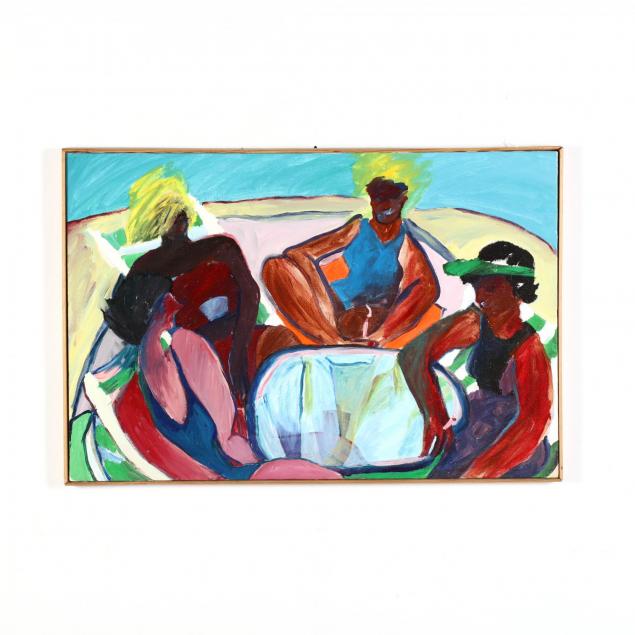 Living in Greenville, NC, Jayne's work is included in the NC Women Artists Archive at UNC-Chapel Hill's Sloane Art Library. She is best known for her colorful abstracted acrylic paintings of women, such as the work presented here.
