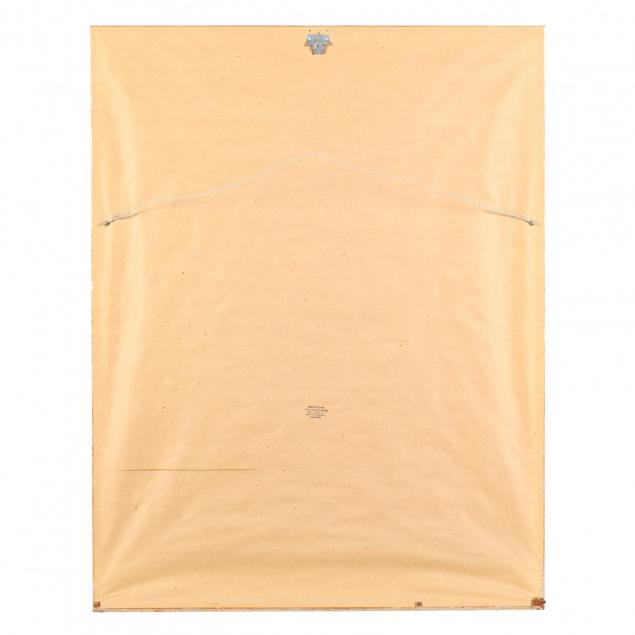 Mixed media on paper, signed at lower right, matted and framed under glass.