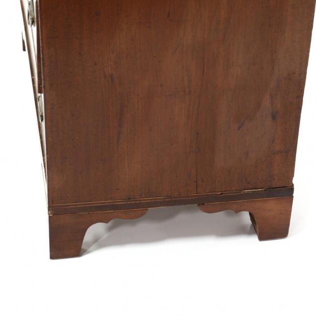 Late 18th century, oak and pine secondary, top with double line inlay to edge, three over three cockbeaded drawers with lightwood line inlay, raised on straight bracket feet.