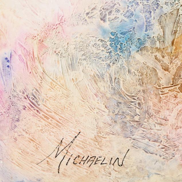 Acrylic on textured board, finished wood sides, signed lower left.