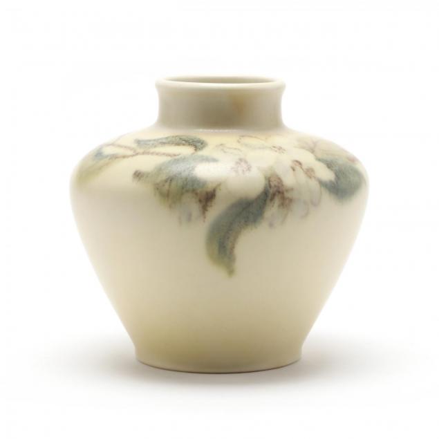 1932, model 6318C, wide shouldered vase with painted dogwood blooms, artist's initials and stamps to underside.