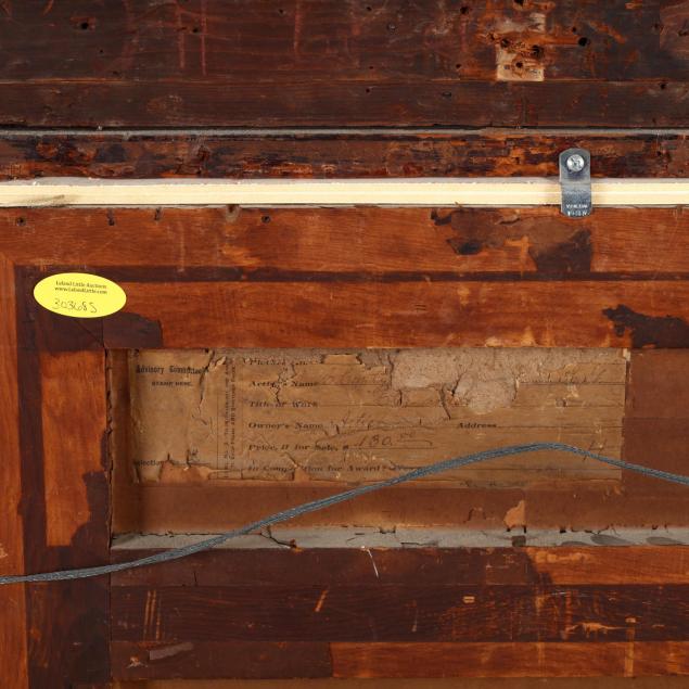 Oil on cradled panel, signed and dated 1892 at lower right, retaining remnants of an exhibition label to the verso, presented in the likely original gilt composition frame.