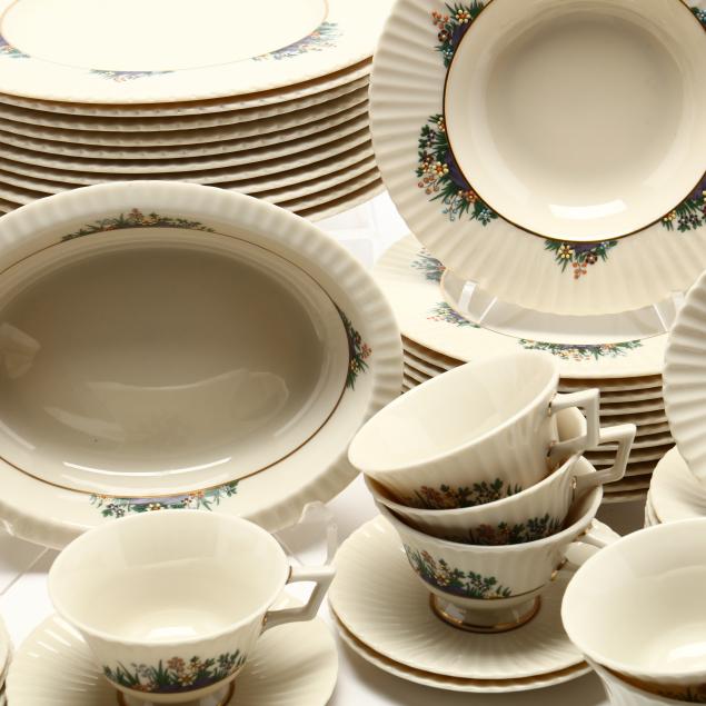 Including (12) dinner plates (10 7/8 in. diameter), (12) rimmed soup bowls, (12) salad plates, (12) bread plates, (12) footed cup and saucer sets, and a vegetable bowl.