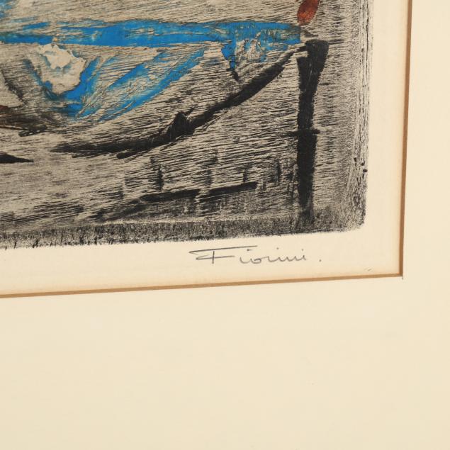 To include prints by Marcel Fiorini (French, 1922-2008), René Carcan (Belgian, 1925-1993), and Brigitte Coudrain (French, born 1934), the first two pencil signed, numbered, and the second is titled, the third is an unusual intaglio exhibition poster dated 1968, all matted and framed.