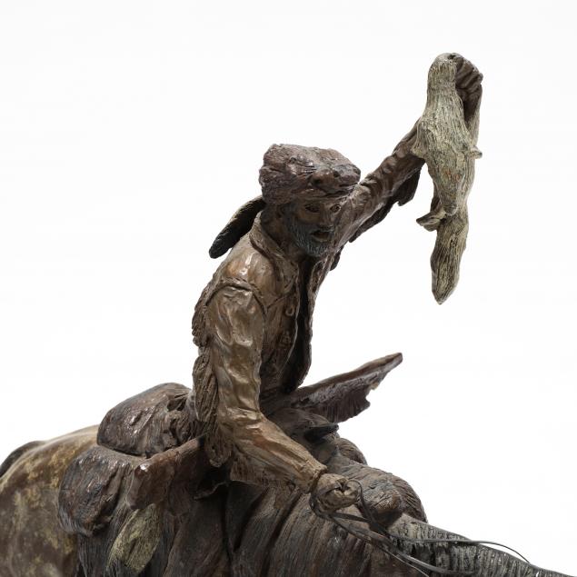 Bronze with applied patina, inscribed signature and title to the verso, numbered 6/20, dated 1977, mounted to a hardwood base.