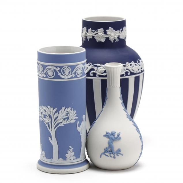 20th century, including an early Adams dark blue jasperware striped vase; pair of Wedgwood