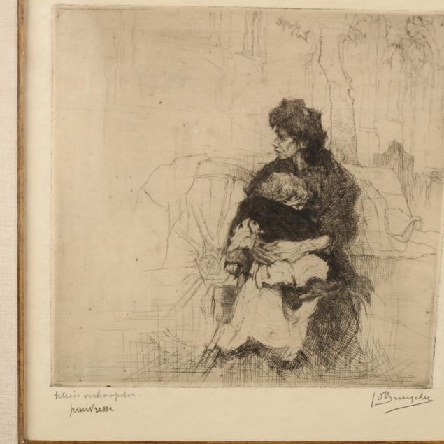 The first is an etching by Gustave Leheautre (French 1861-1932) and the second is by a German artist, both pencil signed and inscribed, presented in uniform giltwood frames and matting.