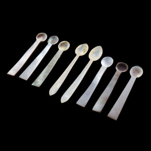(41) pieces including: (17) forks with sponsor's mark for Thomas Wallis & Jonathan Hayne, London (1817) (7.75 in.); (11) forks with sponsor's mark att. Jason Holt but with London (1825) hallmarks (6 5/8 in.); a Georgian silver fork; a silverplate fork; (5) George III silver teaspoons with period script monogram (5.25 in.); and (5) assorted George III silver teaspoons; a silverplate sauce ladle; (2) American sterling silver handled servers; and (8) mother-of-pearl salt spoons.