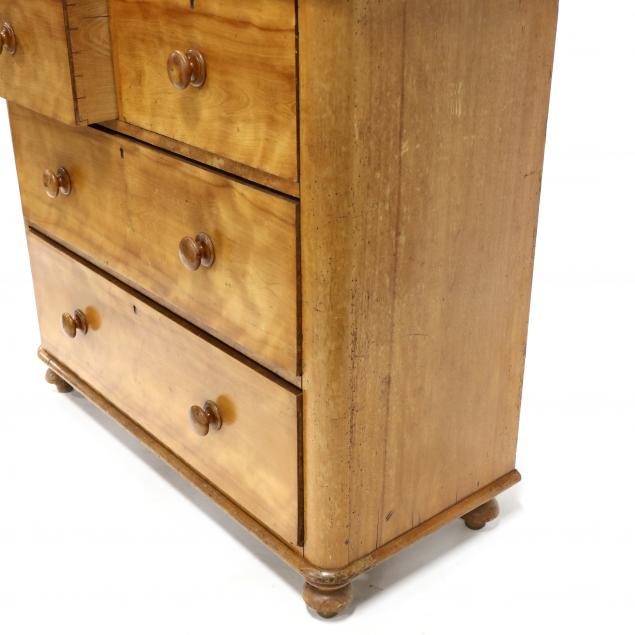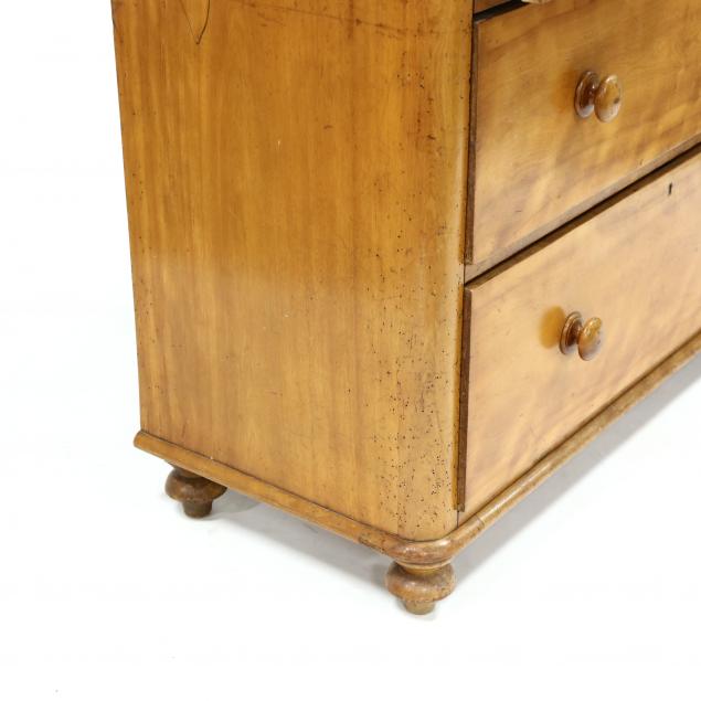 Mid 19th century, pine secondary, two over two drawers, with turned pulls and feet.