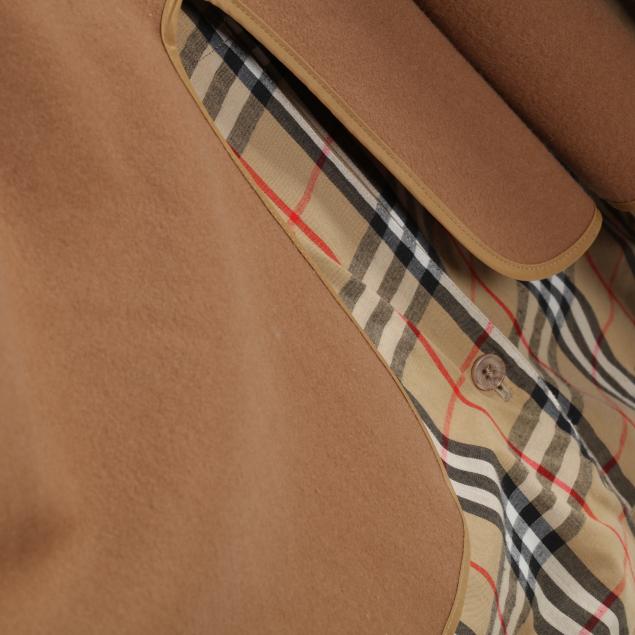 Made in England, traditional style, composed of khaki cotton twill with Market Plaid lining, button front, slit pockets, equipped with zip in wool liner.