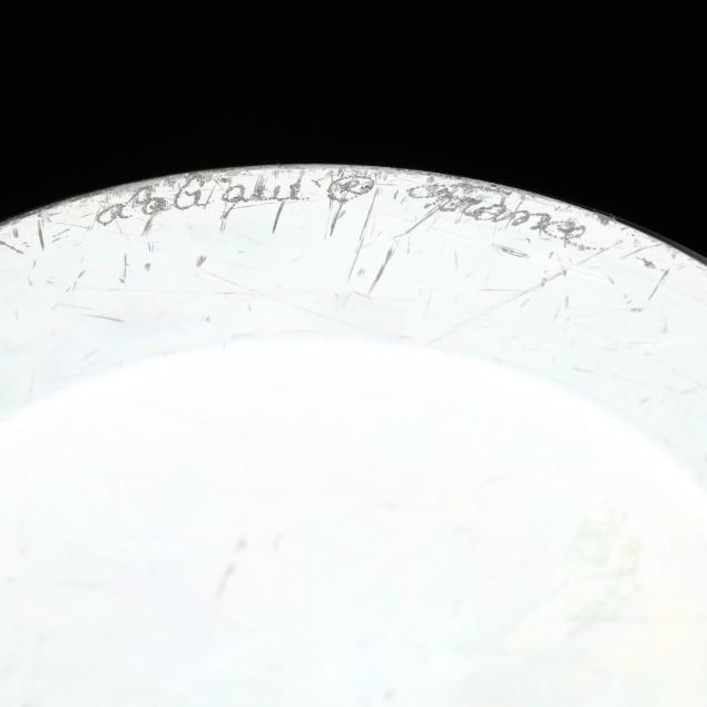 France, mid 20th century, clear crystal in frosted and polished finish with repeating bird motif, signed.