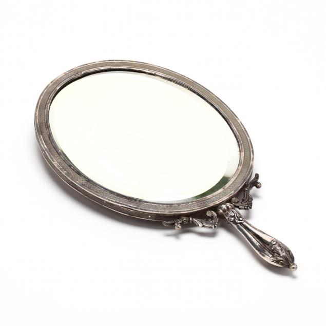 Turkey, circa 1900, with Tughra mark of the sultan and .900 standard mark, oval form with finely chased and repoussé floral and foliate design to backing, applied handle.