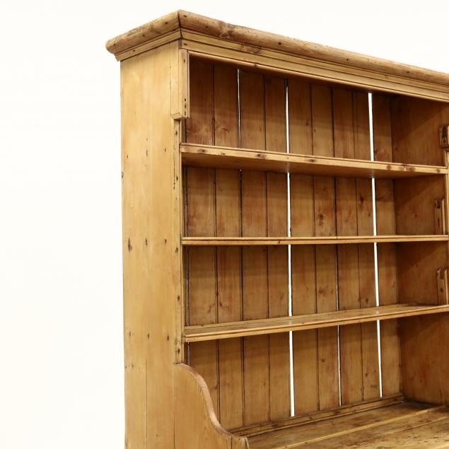 Late 19th century, one-part form, three dish shelves, with two lower hinged panel doors, shelved interior, on flush base.