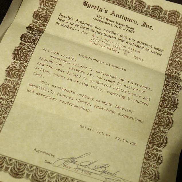 Late 19th century, mixed wood inlays, bowfront form, top with banded edge, case featuring three drawers, over two hinged cabinet doors, with repeating banded inlay, with later bellflower inlays, on square tapered legs, with spade feet.