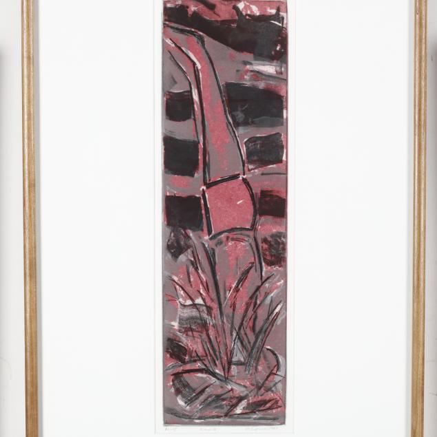 Three works, each an intaglio print in colors, 1987, pencil signed, dated, titled, and marked as proofs lower margin, matted and presented in wooden frames.