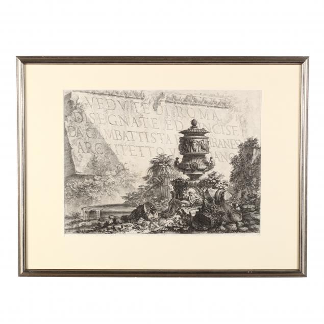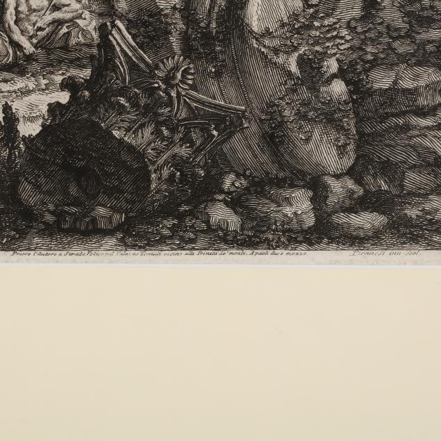 Vedute di Roma disegnate e incise da Giambattista Piranesi, Architetto Veneziano (Views of Rome drawn and etched by Giambattista Piranesi, Venetian Architect), the print examined out of frame is on laid paper, each with center crease as issued, presented in uniform matting and silvered wooden framing.