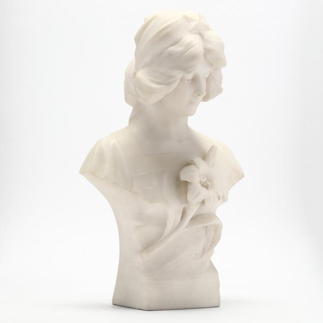 An Art Nouveau Carved Marble Bust of a Young Beauty