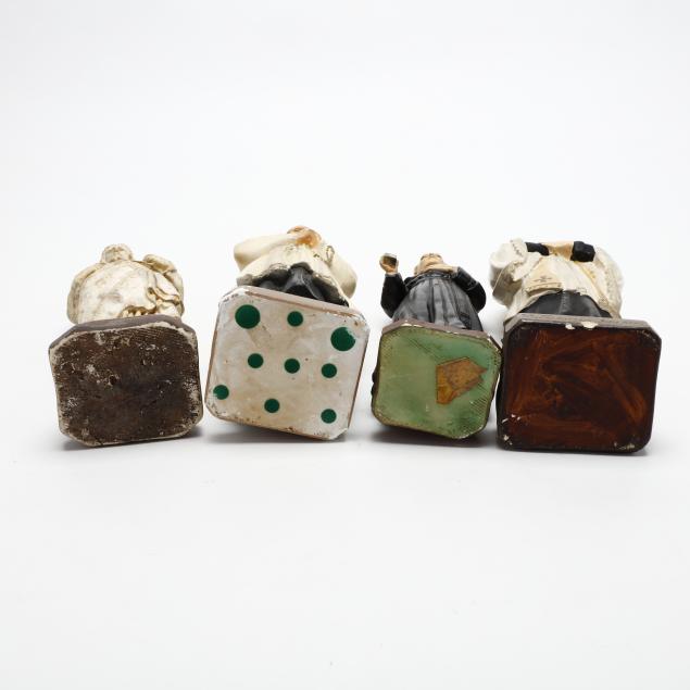 Early to mid 20th century, including four chalkware figures, one bisque figure, brass crucifix and rosary necklace.