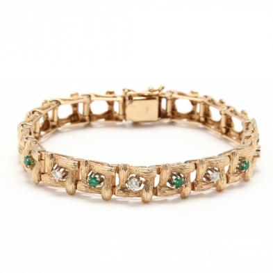 14kt-gold-emerald-and-diamond-bracelet-signed