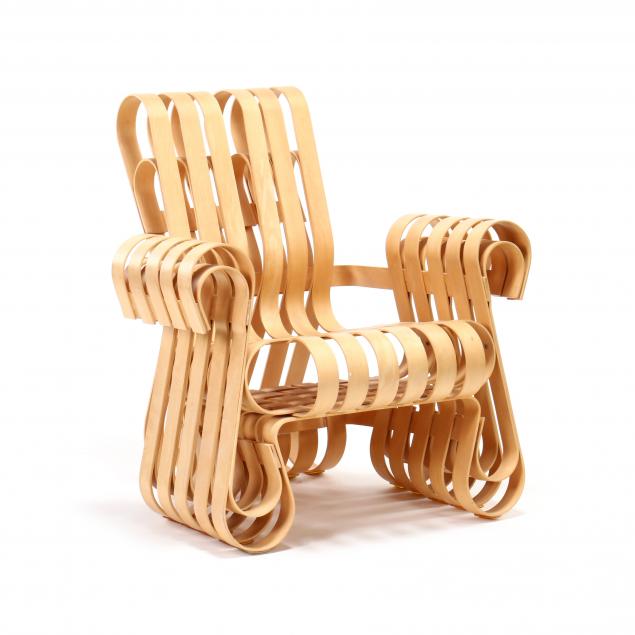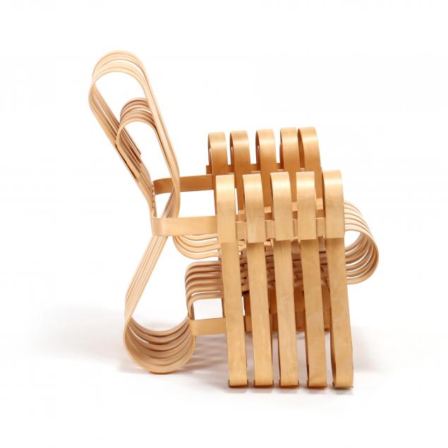 1994, Knoll, steam bent woven maple, underside signed "Frank Gehry, Knoll, Made in USA, 12/05/93."