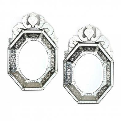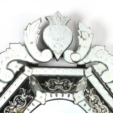 Mid 20th century, central oval beveled mirrors with paneled and shaped surround featuring wheel cut floral designs.