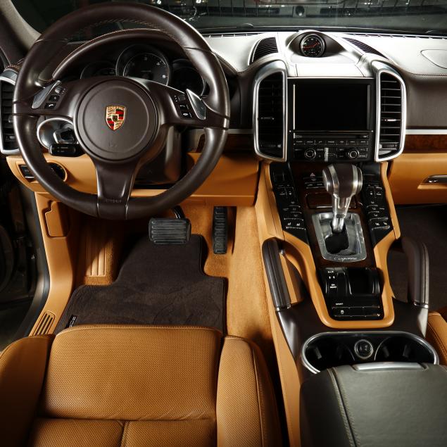 The exterior to include Umber Metallic paint, 19" Cayenne Design II wheels, roof rails and sunroof. The interior is special as it was specified to include a unique combination that became a favorite of the originating dealer. Finished in two-tone Espresso/Cognac natural leather with walnut trim, the dash looks distinctive. The standard Alcantara option was omitted. Comfort options included are; power steering plus (speed-sensitive), multi-function steering wheel, entry and drive (keyless), fourteen-way power seats with cooling and heat features, premium package, SiriusXM receiver with Burmeister Surround Sound Speaker system, and on-board wireless internet connection.
