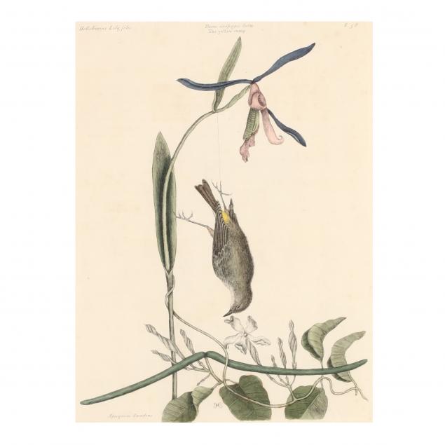 Hand-colored engravings on laid paper, 18th century, to include "Brown Booby," "The Yellow-Rump," and "The Snow-Bird...," housed in uniform matting and gilt framing.