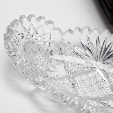 Brilliant cut dish with some small edge chips; one stopper with chip and loss to end.