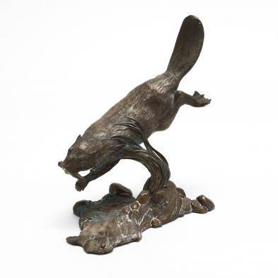 a-vintage-bronze-sculpture-of-a-swimming-beaver