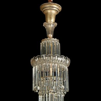 Verdigris and loss to silverplate surface; old wiring; a few later prisms.