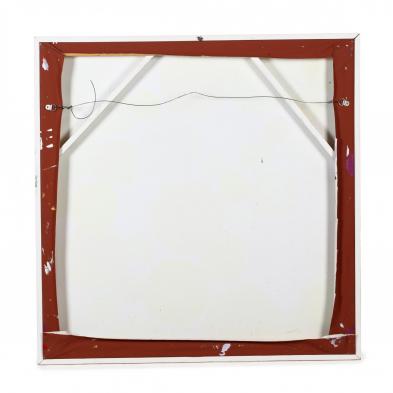 Oil on canvas, bold and bright over-lapping circles define this cheerful composition, signed lower right, integral white painted frame.