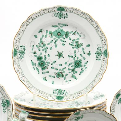 (83) pieces, 20th century, marked with underglaze blue swords, first quality, including: (12) dinner plates (10.25 in.); (12) salad plates (8.5 in.); (16) dessert plates (7 1/8 in.); (12) bread & butter plates; (12) cups with (12) accompanying saucers; (1) covered sugar, (1) creamer, (1) coffee pot; (1) teapot; (2) round platters (11 in.); and (1) oval platter (16.5 in.).