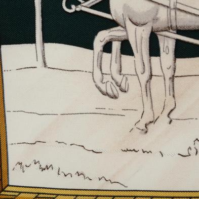 Made in France, by Phillipe Ledoux, a design created in 1974 which reflect Hermes' history, the center horse drawn carriage gives a reminder of the Hermes logo. No care tag.
