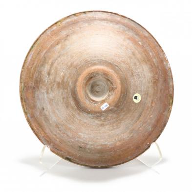 20th century, slip decorated earthenware, unglazed exterior, recessed footed bases.