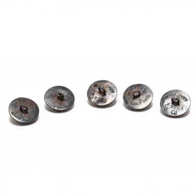 A Set of Five Georg Jensen Silver and Coral Buttons