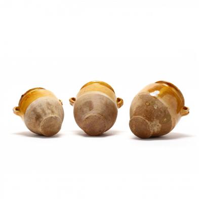 French, yellow glazed terra cotta, high shoulder, applied loop handles.