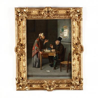 Oil on canvas (lined), signed at lower left, presented in an ornate period Florentine style gilt composition frame.