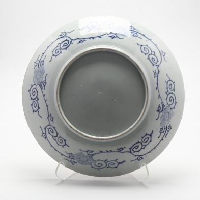 Early 20th century, with decoration of large groups of figures, with central blue and floral decoration, diapered border.