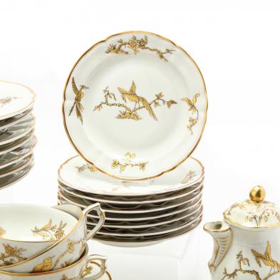 B & C Bernardaud, Limoges, service designed for the reception of Queen Elizabeth in France, April 1957, to include: eight plates (10.25 in.); eight plates (8 5/8 in.); eight plates (6.25 in.); eight cups and eight saucers; covered sugar and creamer; gravy boat; two vegetable servers; two platters; covered tureen.