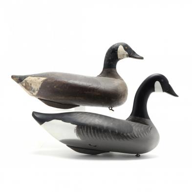Hand-carved and painted, with weights, the first signed "Charlie Joiner 1951" (small area of underside flaking); a working Canadian goose attributed to Madison Mitchell, 1940s-50s (flaking paint, neck separation).