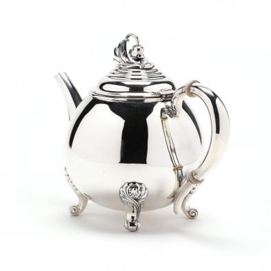 Five pieces including: coffee pot (9 in.); teapot; sugar bowl with cover; creamer; and waste bowl. No monograms, model number C360.