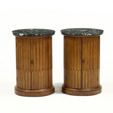 Pair of Neoclassical Style Marble Top Low Cabinets