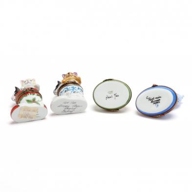 Each depicting kittens in various poses, one a blue fishnet and the others in natural finish.