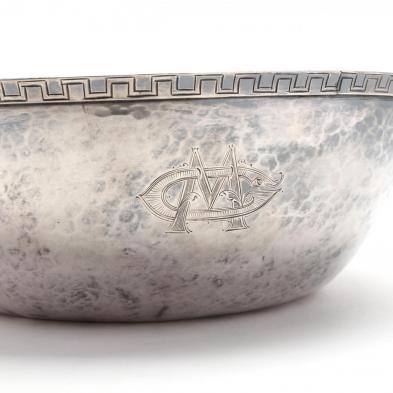 (active New York, New York, circa 1893-1931), with period monogram "CM," hand-hammered surface with Greek key border to rim.