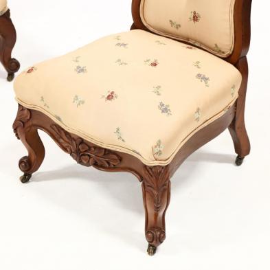 Pair of Rococo Revival Carved Walnut Slipper Chairs