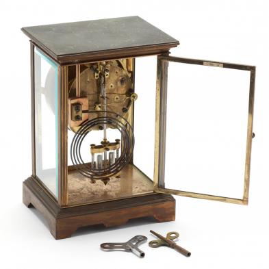 Clock will run, but is time and strike are out of sync; the brass is deeply toned with a few small spots of verdigris. Please See Terms and Conditions of Sale: Clocks and Watches.