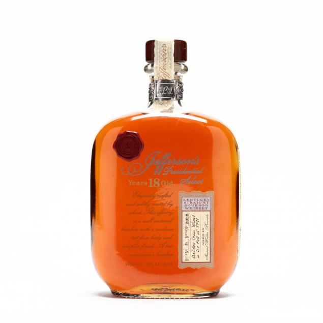 NV, Jefferson's Presidential Select, 18 Year Old Kentucky Straight Bourbon Whiskey, 47%, distilled fall of 1991, batch no. 6, bottle no. 2058, sealed (1 750 ml)