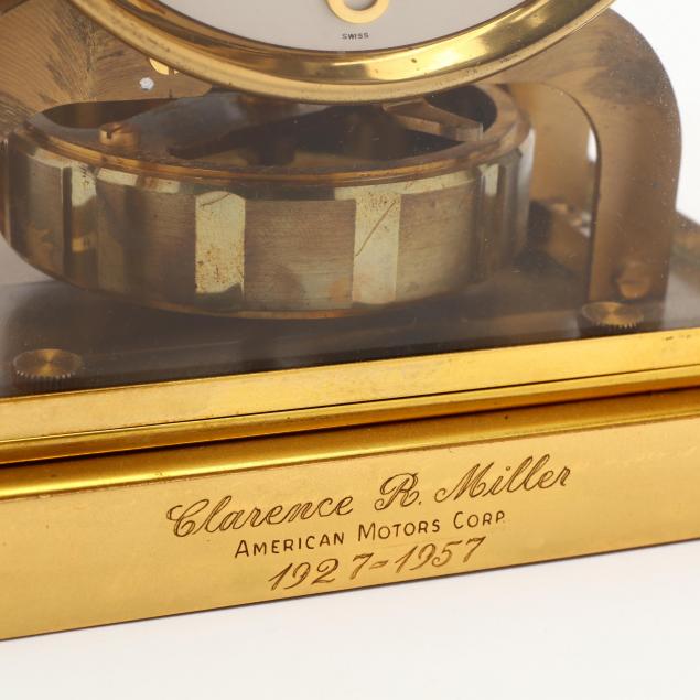 Mid 20th century, Swiss, 15 jewel, unadjusted, number 111189, with lower presentation plaque reading "Clarence R. Miller, American Motors Corp., 1927-1957, with original carrying case.