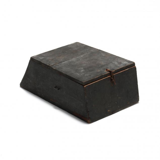 Northampton County, circa 1800, tulip poplar with a back wash, removable 3/4 lid with iron clasp, sides of case with iron loops, tapered rear panel.