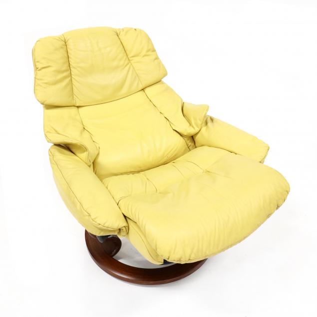 Ekornes, Stresless Yellow Leather Lounge Chair and Ottoman
